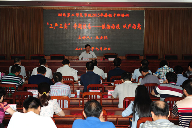 本网讯(记者 吴洪莉 学通社记者 顾敏)6日上午,我校“三严三实”专题教育报告会在行政楼五号会议室召开,省委高校纪工委书记、教育厅纪检组长王安怀作了题为“依法治校,从严治党”的主题报告。党委书记张国秀主持报告会。校领导胡仲军、许邦官、李建勇、陈秋中、黄颂、夏力、胡兴及校长助理左林霞出席,全校中层干部参加报告会。