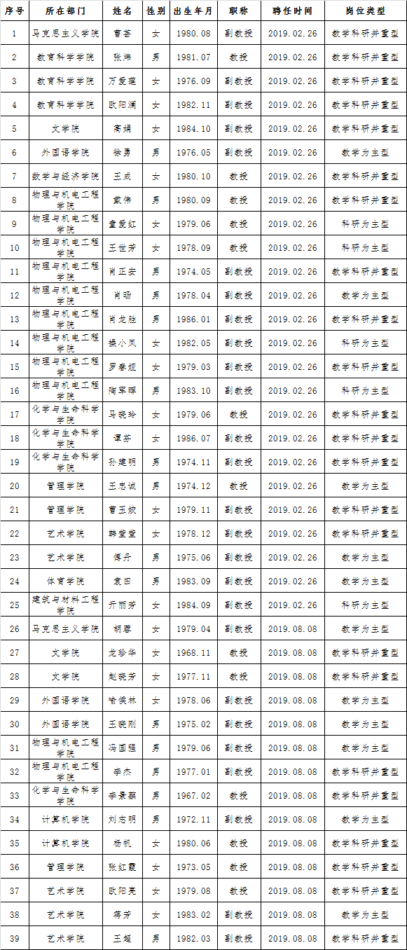 根据2018年、2019年职称评审结果,曹芸等39位专技人员聘岗为所申报类型的专业技术职务,其聘岗分类如下: